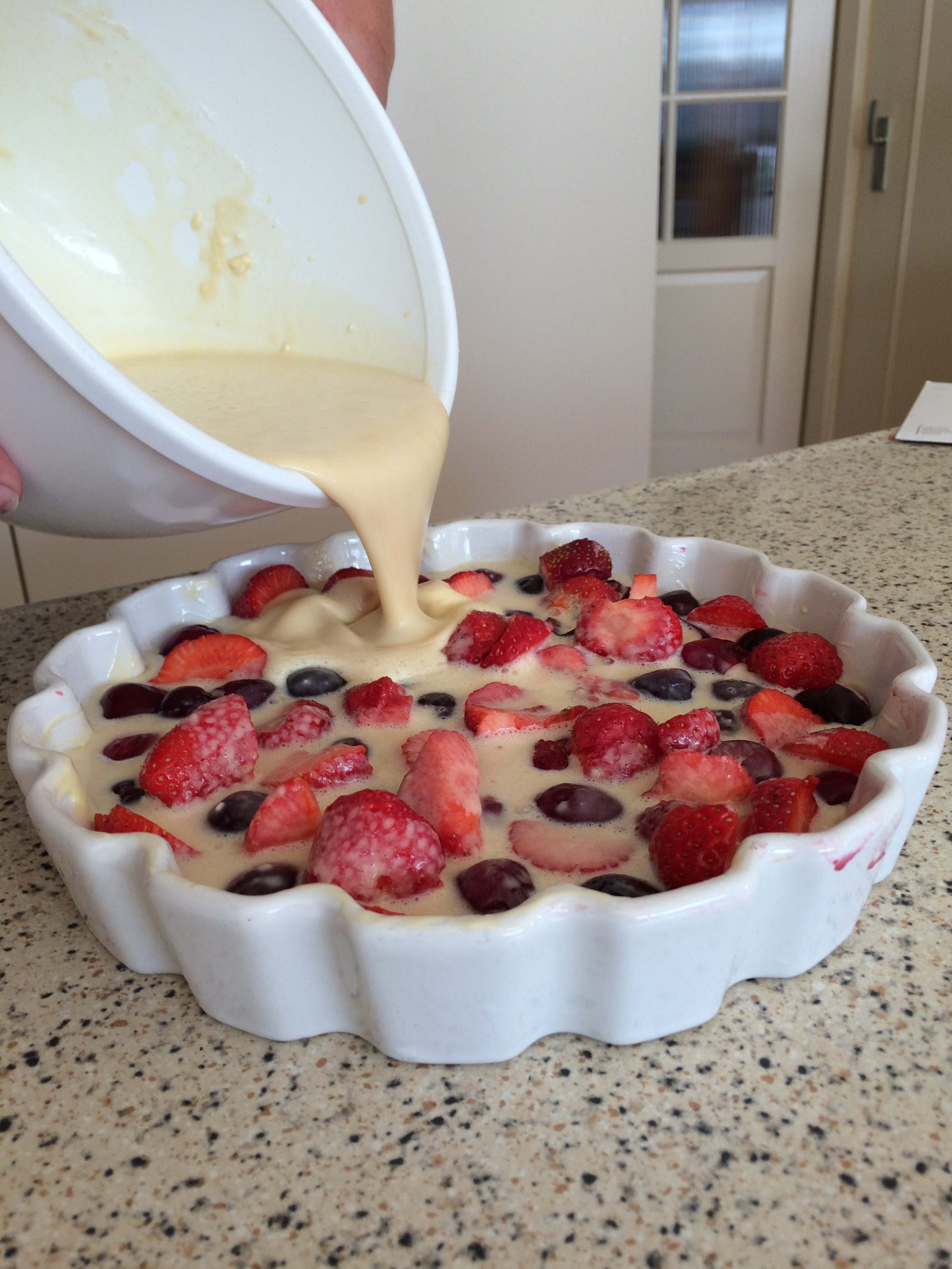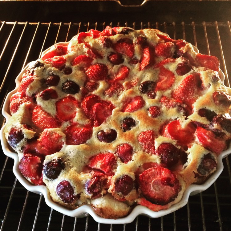 Aardbeien en kersen clafoutis.