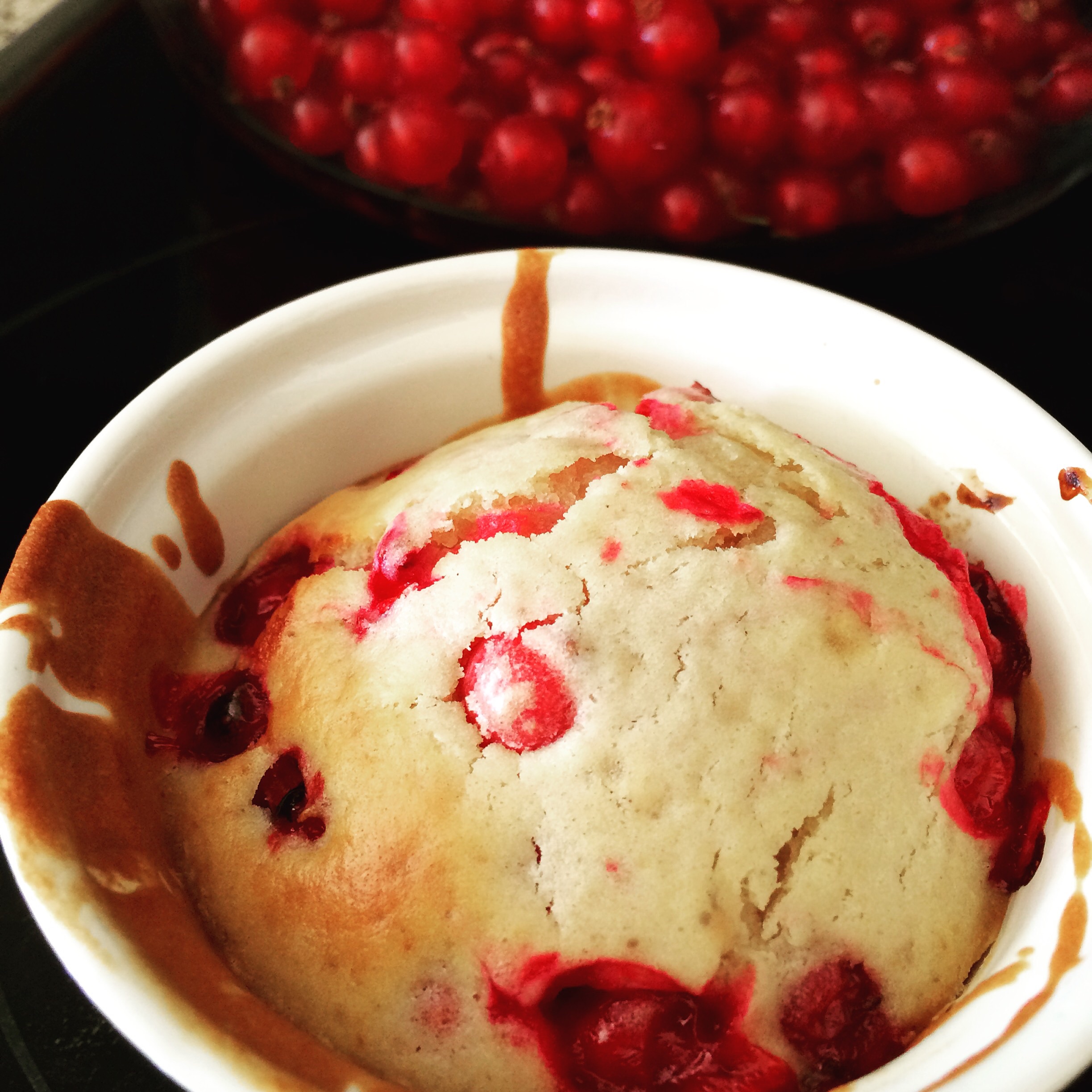 150 gr. rode bessen erdoor roeren.