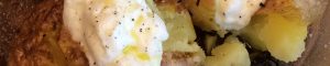Snijd ze kruislings in en druk erop met een lepel om ze wat open te laten gaan. Schep er een lekkere lepel vetarme Griekse yoghurt op, en evt. daar bovenop nog wat olijfolie en evt. wat kruiden.